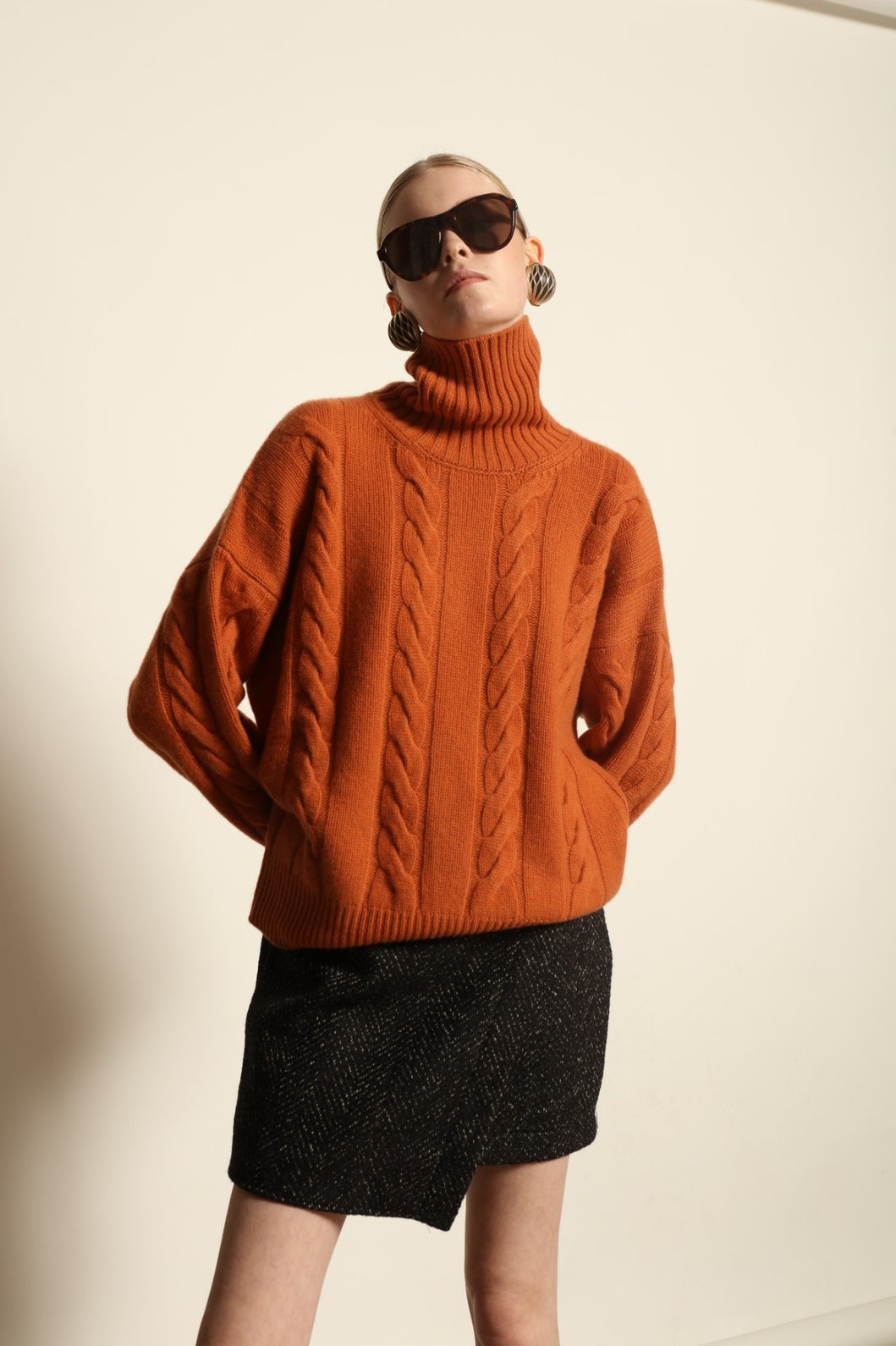 Lined with naturally dyed mulberry silk for a soft and luxurious finish, the skirt is completed with a discreet side zip and delicate buttons. Designed to embody both strength and grace, it transitions effortlessly from day to evening with enduring sophistication.